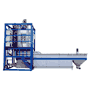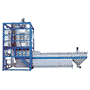 DKB-312VS, 412VS maximizes energy-effciency and productivity by using vacuum method for molding, product cooling and filling. Minimal use of water guarantees easy cutting work in short time and available accessories are also minimized. All are working by compressed air with hydraulic pressure line and this guarantees precise control of process as well as safety. It is designed for full-automatic operation. |